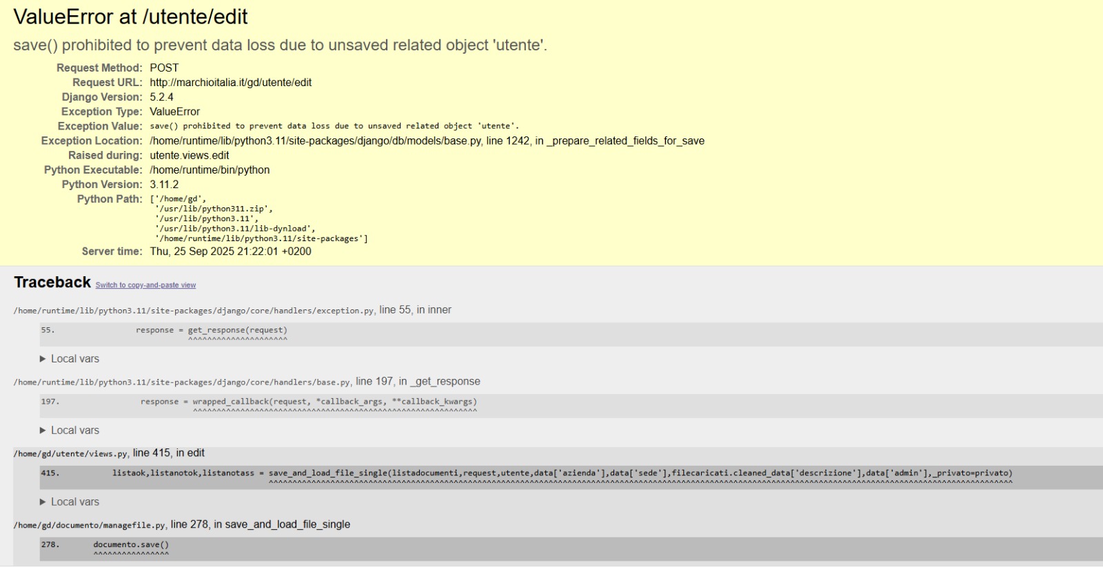 #25 edit utente - errore